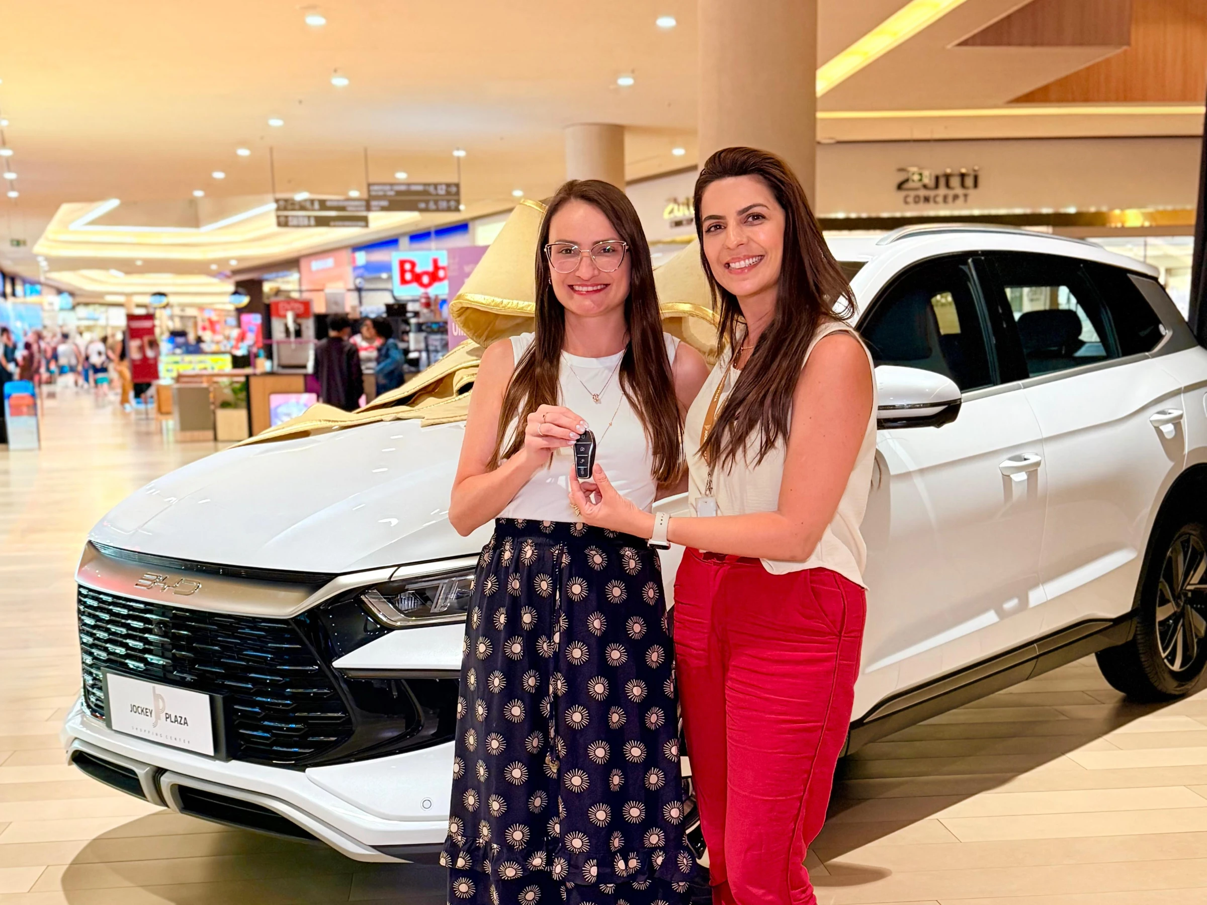 O Jockey Plaza Shopping realizou, na noite da última quarta-feira (8), o sorteio da campanha natalina “Celebre o Natal no estilo Jockey”, que premiou a cliente Anna Flávia Nardielo, de 32 anos, com um carro elétrico BYD Song Pro zero quilômetro. O sorteio foi realizado ao vivo, com transmissão pelas redes sociais do shopping, e contou com a participação de clientes presentes.